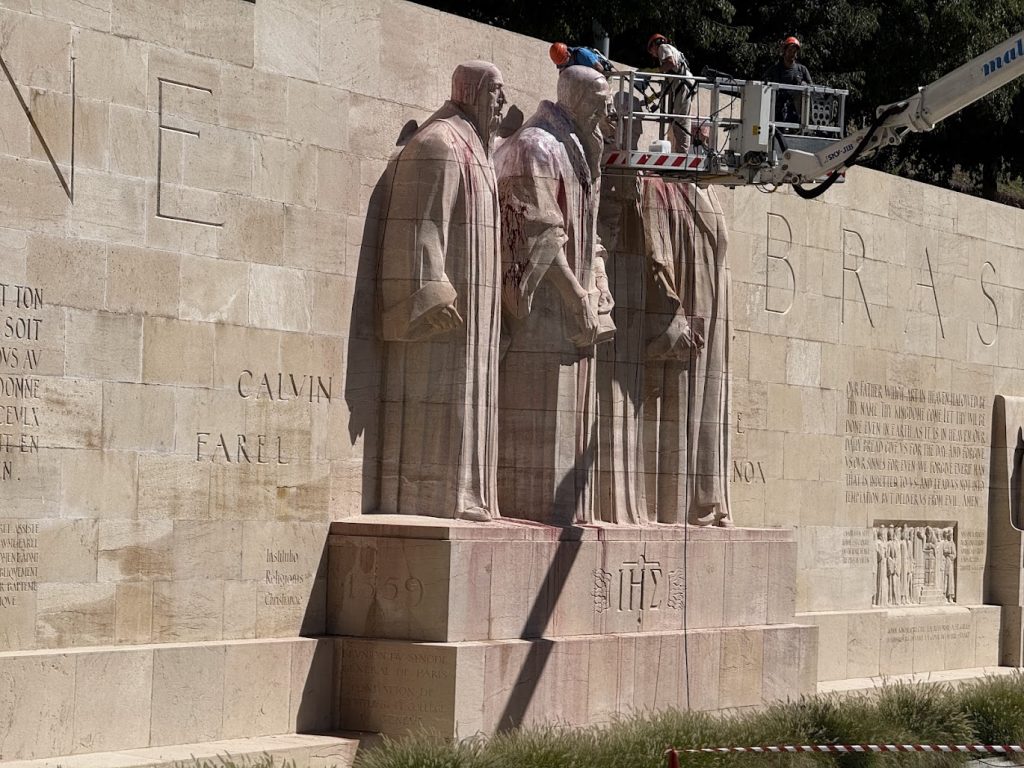 At the center, the Geneva Reformation. (At this time, the monument was vandalized with red paint to symbolize blood).