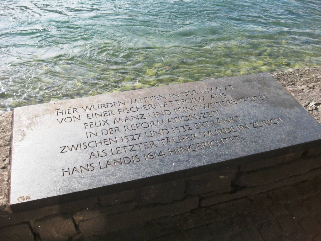 After repeated warnings, arrests, and imprisonments, Manz was finally condemned to death. On January 5, 1527, he was executed by drowning in the Limmat River in Zurich. This method of execution, sometimes grimly referred to as the “third baptism,” was intended as a direct punishment for his rejection of infant baptism. As he was led to his death, Manz is said to have praised God and remained steadfast in his faith, while his mother and brother encouraged him from the riverbank.