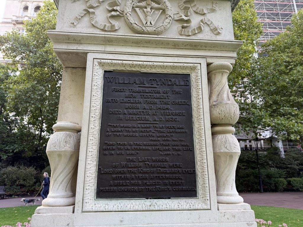 Just east of St. James Park in London, and just off the bank of the River Thames, in the Whitehall Gardens, is a larger than life statue of William Tyndale.