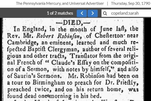 Robert Robinson was born on September 27, 1735, in Swaffham, Norfolk, England. His father died when he was only eight years old, leaving his mother to raise him under difficult circumstances. Determined that her son receive an education, she sent him to London as a young teenager to learn the trade of a barber.