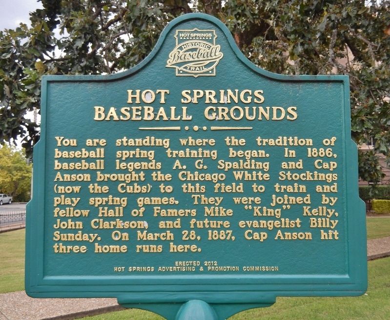 You are standing where the tradition of baseball spring training began. In 1886, baseball legends A. G. Spalding and Cap Anson brought the Chicago White Stockings (now the Cubs) to this field to train and play spring games. They were joined by fellow Hall of Famers Mike “King” Kelly, John Clarkson and future evangelist Billy Sunday. On March 28, 1887, Cap Anson hit three home runs here.