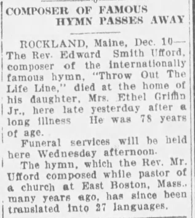 Edwin Ufford continued his ministry into the early 20th century, eventually serving in leadership within the Baptist church and taking on editorial responsibilities for several Christian publications. He never wrote another hymn as widely sung as “Throw Out the Life-Line,” but this one memorable work secured his lasting place in gospel hymnody.
