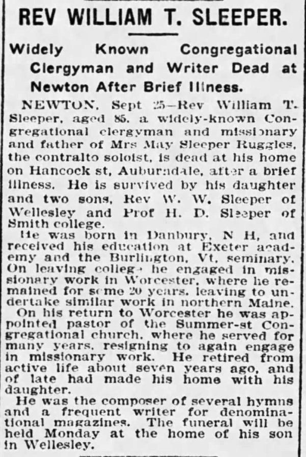 William True Sleeper (1819–1904) was a Congregational minister who served in the New England area during the late 19th century. Born in Danvers, Massachusetts, Sleeper graduated from Dartmouth College in 1840 and entered the ministry shortly thereafter. His pastoral career spanned more than forty years, during which he served faithfully as a preacher, counselor, and hymnwriter.