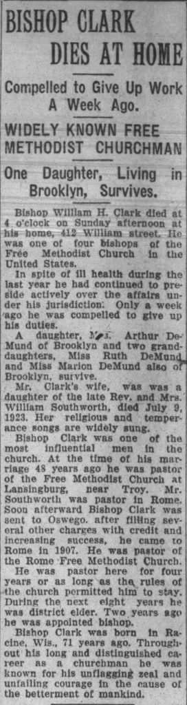 Born in the mid–nineteenth century, Clark came of age during a period of energetic revivalism and expanding denominational work in America. He became associated with the Free Methodist movement, a branch of Methodism that emphasized holiness of heart and life, plain living, and earnest evangelism. Clark did not seek prominence for himself; rather, he devoted his strength to preaching Christ, shepherding congregations, and building up the church. Over the years he served as a pastor, district leader, and eventually as a bishop within the Free Methodist Church. His leadership was marked not by spectacle, but by steady faithfulness.