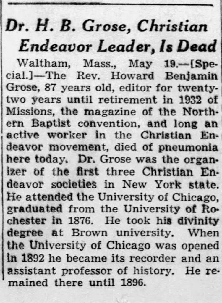 Yet Grose’s deepest calling was Christian service. In 1904, he became editorial secretary of the American Baptist Home Mission Society, a role that gave him a platform to promote evangelism, education, and mission work throughout the United States. He also served as editor of The Home Mission Monthly and The Missionary Review of the World, publications that encouraged believers to give their time, resources, and lives for the cause of Christ.