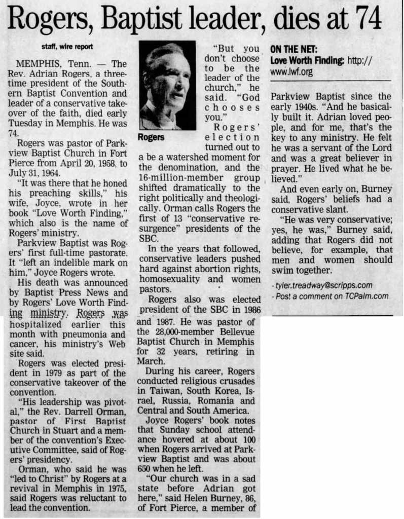 - Denominational Reshaping – Through his leadership in the SBC, Rogers helped shift one of America’s largest Protestant bodies toward a firm evangelical and conservative theological posture.