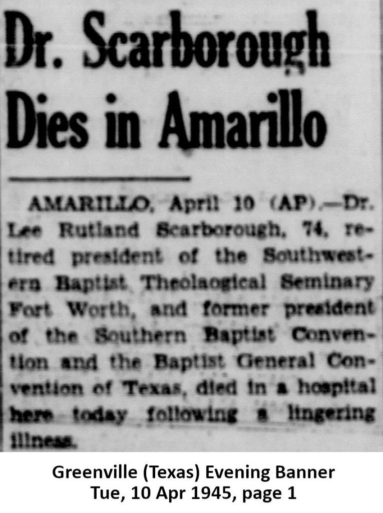 After nearly three decades at the helm of Southwestern Seminary, Scarborough retired in 1942, though he continued to write and preach until his death on April 10, 1945. He left behind not only a thriving seminary but a spiritual legacy that shaped the direction of Southern Baptist life for generations.