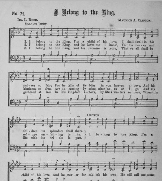 The exact year Ida L. Reed wrote “I Belong to the King” is uncertain, though it first appeared in print in the early 1900s. The hymn reflects Reed’s conviction that Christians are not defined by their earthly conditions but by their spiritual heritage in Christ. Living in poverty and physical frailty, Reed often spoke of her “riches in Christ” as her greatest possession.